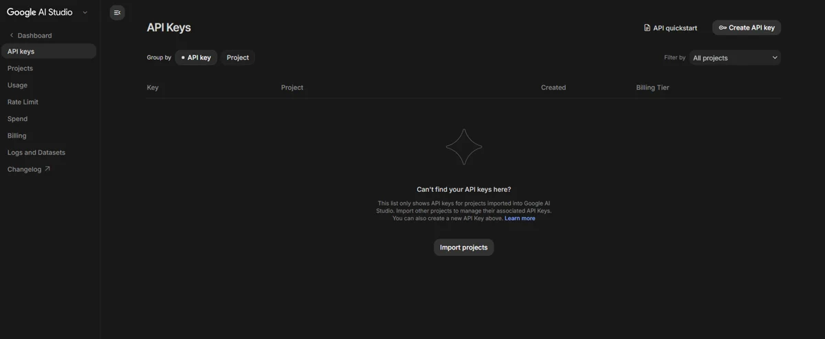 - ›Name your key, select a project (or let it create one for you), and click "Create key"